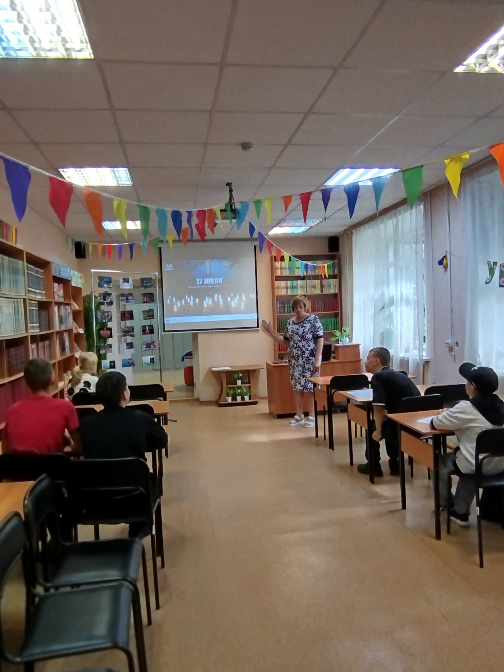 Сегодня в нашей библиотеке началась акция, посвященная этой дате. Для детей летнего лагеря КЦСОН Октябрьского района прошло мероприятие, в ходе которого мы рассказали ребятам о событии, получившем название «Донецкое кровавое воскресенье», о памятнике «Детям Донбасса, детям войны», об «Аллее ангелов».